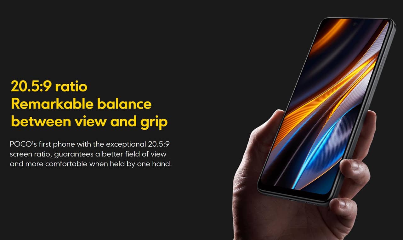 ▼あとPOCOスマホでは初となる縦長形状になっているのも特徴です!画面比率は20.5×9で解像度は2,460×1,080と縦長!WEBブラウジングやSNSで表示範囲が若干ながらアップしているのはPOCO X4 GT特有ですね。↓