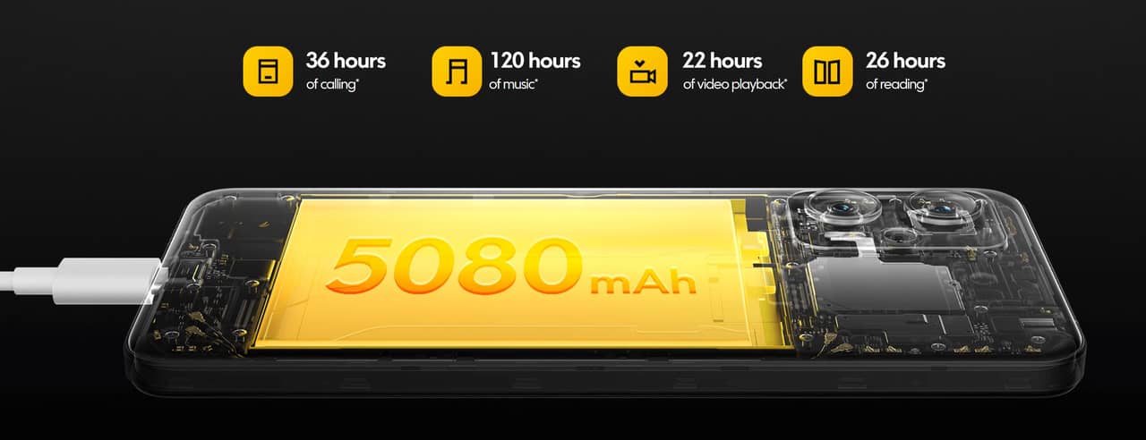 ▼バッテリー容量は5,080mAhでたっぷりサイズ!また67W充電に対応しており、大型のバッテリーながら46分で満充電できる速さも魅力です!↓