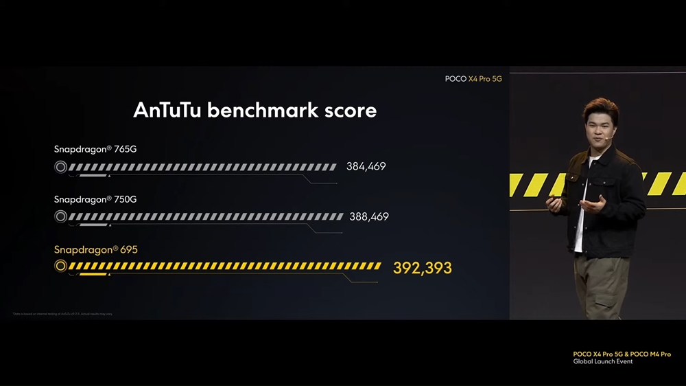 ▼公式で明かされたPOCO X4 Pro 5GのAnTuTuスコアは392,393点!Snapdragon 765Gや750Gよりも高く、普段使いは間違いなく快適!重いゲームは画質を落とすなどの工夫が必要です。ハイエンドほどの性能はありませんが、後述する価格の安さを考えると十分すぎると思えます。↓