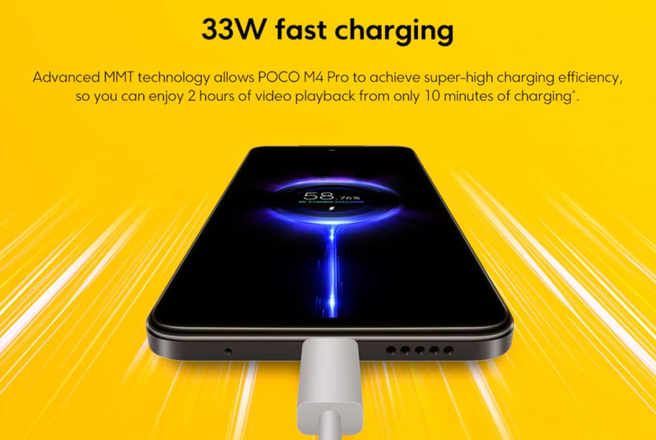 ▼バッテリー容量はこちらも大容量な5,000mAhを確保!そして33Wの急速充電にも対応!POCO X4 Pro 5Gほどではないにせよ、この価格帯のモデルで33W対応は凄い。↓
