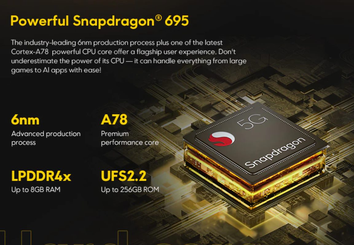 ▼SoCは高水準スペックを持つSnapdragon 695を搭載!普段使いに快適スペック!昔はSnapdragon 600番台はミドルレンジで動きも早くない…と言われていましたが、性能のインフレは目覚ましいものを感じさせますね。さらに5Gにも対応しています!↓