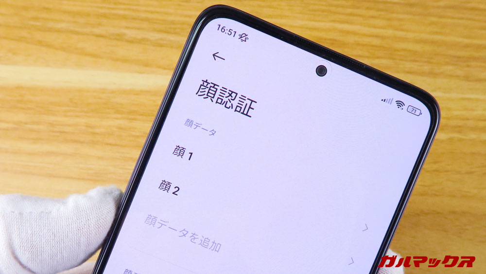 ▼顔認証に関しては文句なし!また2回まで顔を登録させることができるので、顔認証の精度を上げることができるほか、メガネの有無それぞれで登録させることで認証確率を底上げできるのもGood!↓