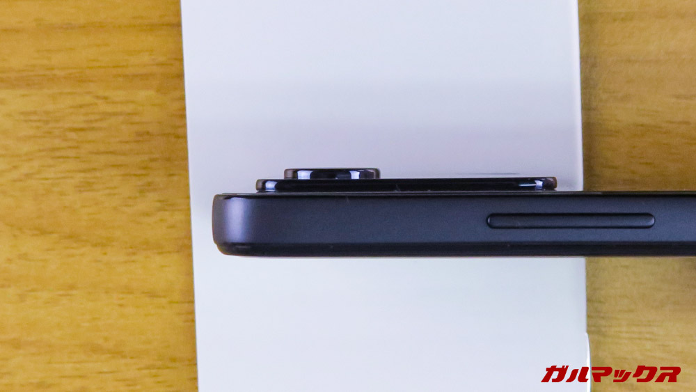 ▼POCO X4 Pro 5Gで目につくのがカメラの出っ張り。歴代スマホでも最大級に出っ張っています。大型な土台も合わせれば、厚みは目視2mm以上は出っ張っています。↓