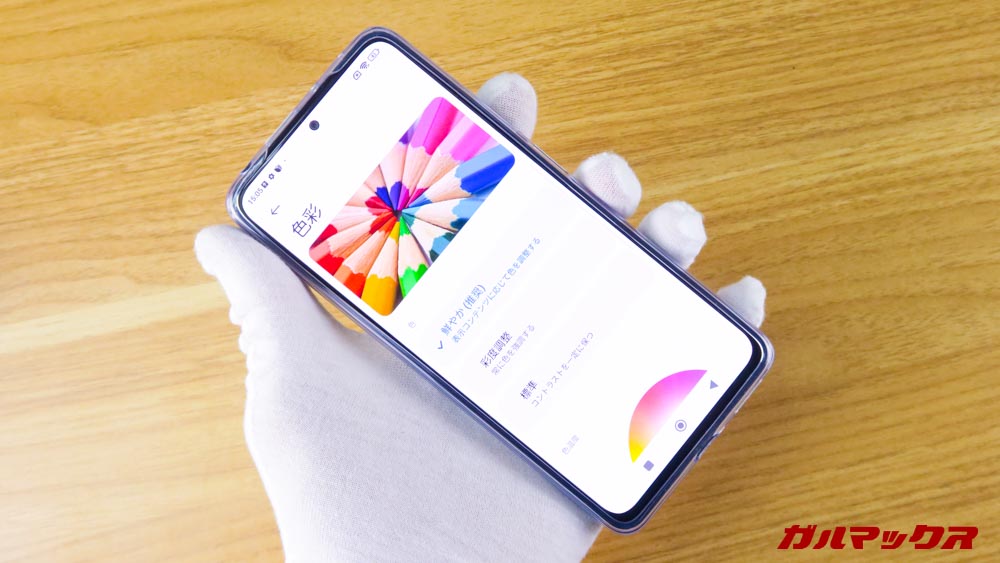 まず有機ELなので表示もパリっとしており色合いも豊かでキレイ。そんでもって視野角も広く、液晶では起こりうるパンチホール周りの影もありません。そもそもパンチホール自体も小さく、存在も殆ど気になりませんしね。