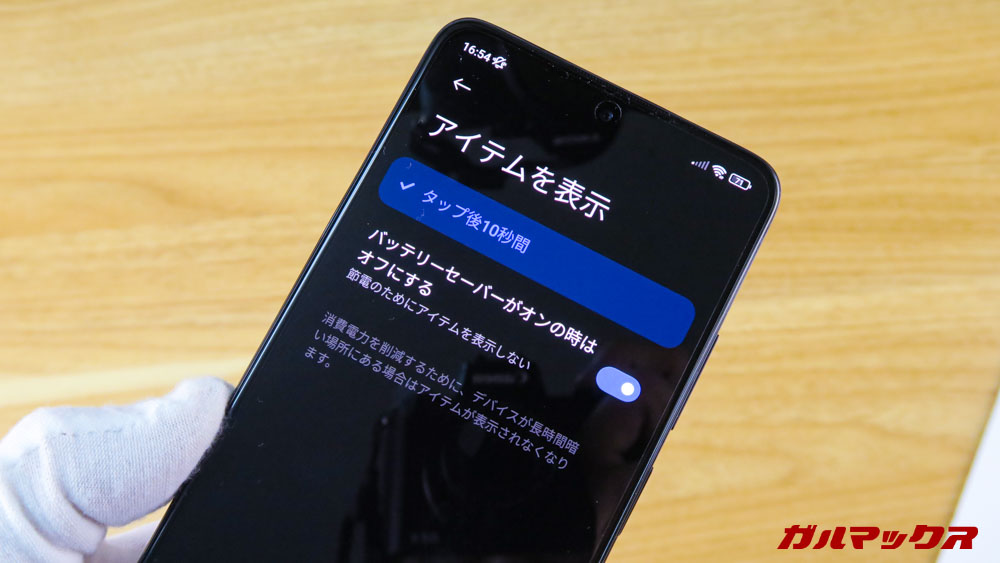 ▼しかし、AoDの常時表示が非対応なのはいただけない。タップ後の10秒間しか表示できません。前にもRedmiやPOCOでこういう現象があったので、もしかしたら仕様なのだろうか…↓