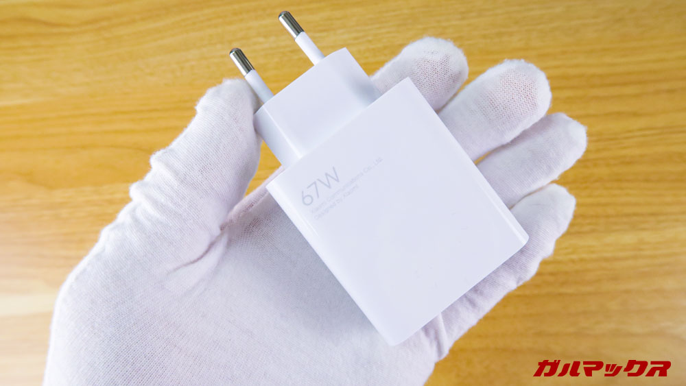 ▼付属の充電器は67Wに対応!ただし海外形状プラグなので日本コンセントで使う場合は変換プラグが必要なものの、海外モデルなので文句は言えない(´・ω・`)。↓