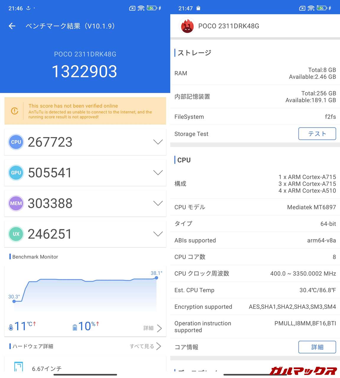 ただ、ちょっと気になったのはAnTuTuスコア。