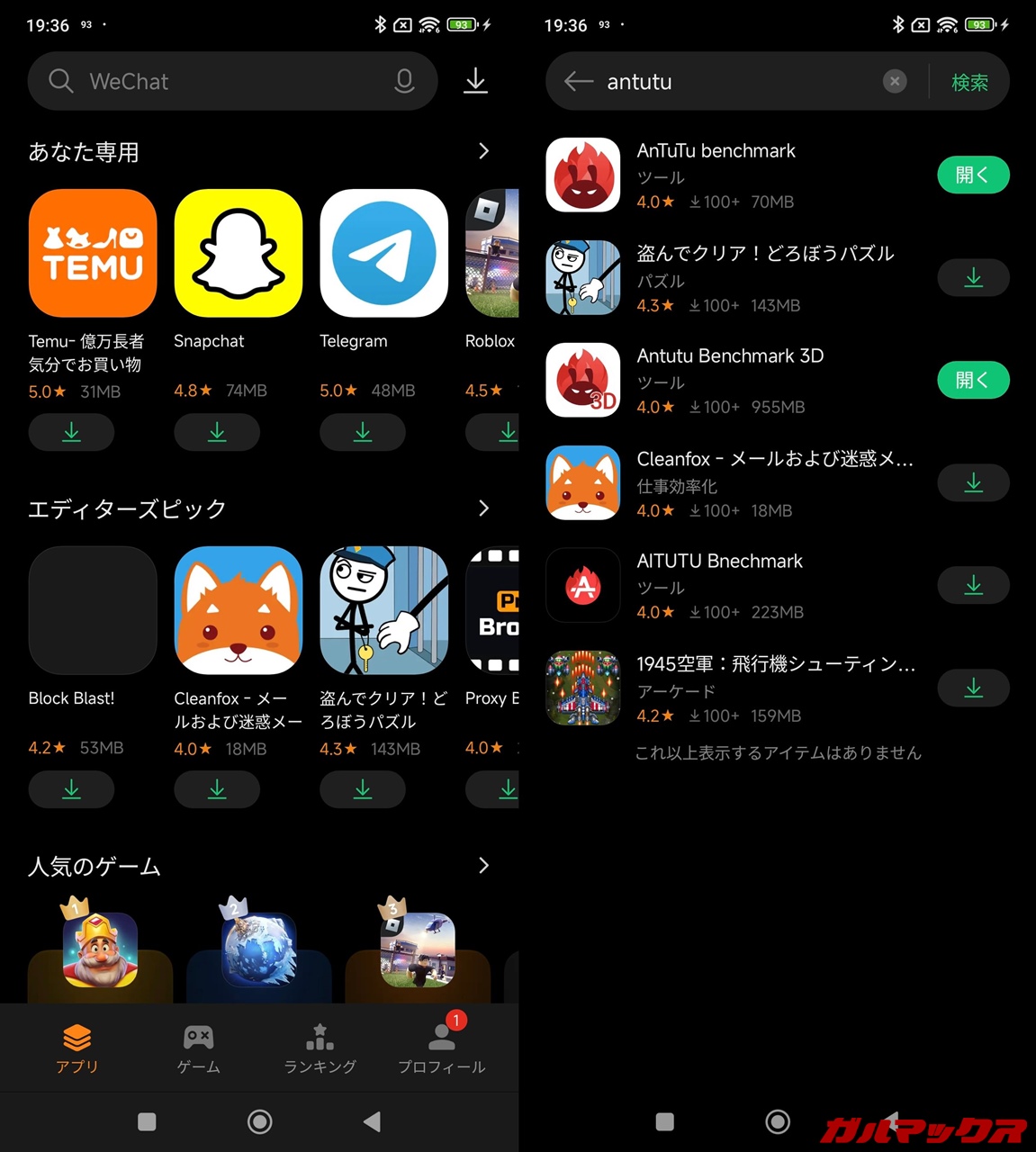 とはいえPlayストアがあるしこちらは広告も差し込まれるしで使うことはほぼありませんでした。Playストアにはないアプリをダウンロードするなら使っていけそうですが今のところAnTuTu以外で見当たらないし‥