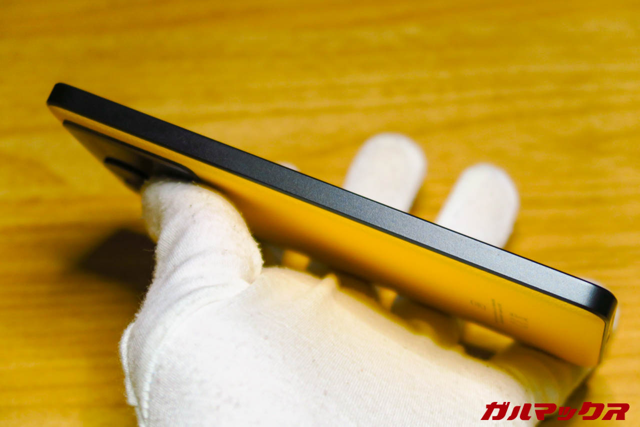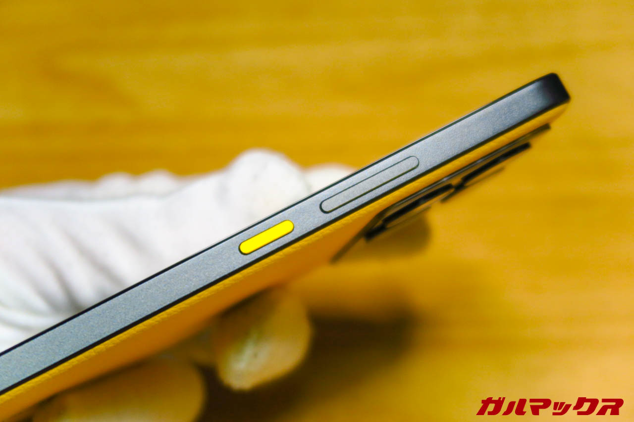 ▼また、ブラックアウトされた側面デザインも凄くカッコいいです。黄色と黒のツートンっていいよね!あと電源キーだけがアクセントとして黄色になっているってのも好き。↓