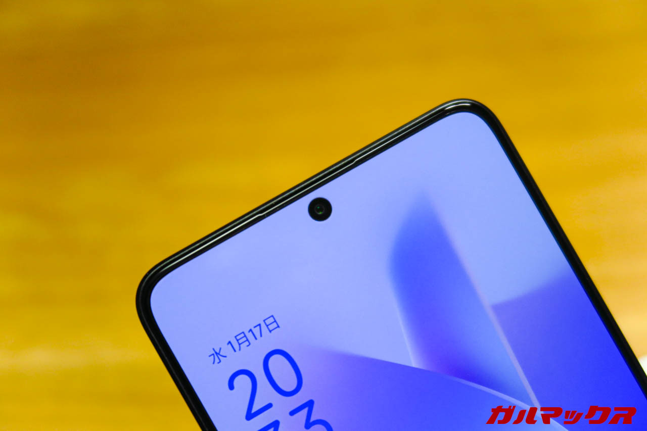 ▼画面形状はよくあるパンチホールで非エッジ形状。下部ベゼルが薄い!良い!↓