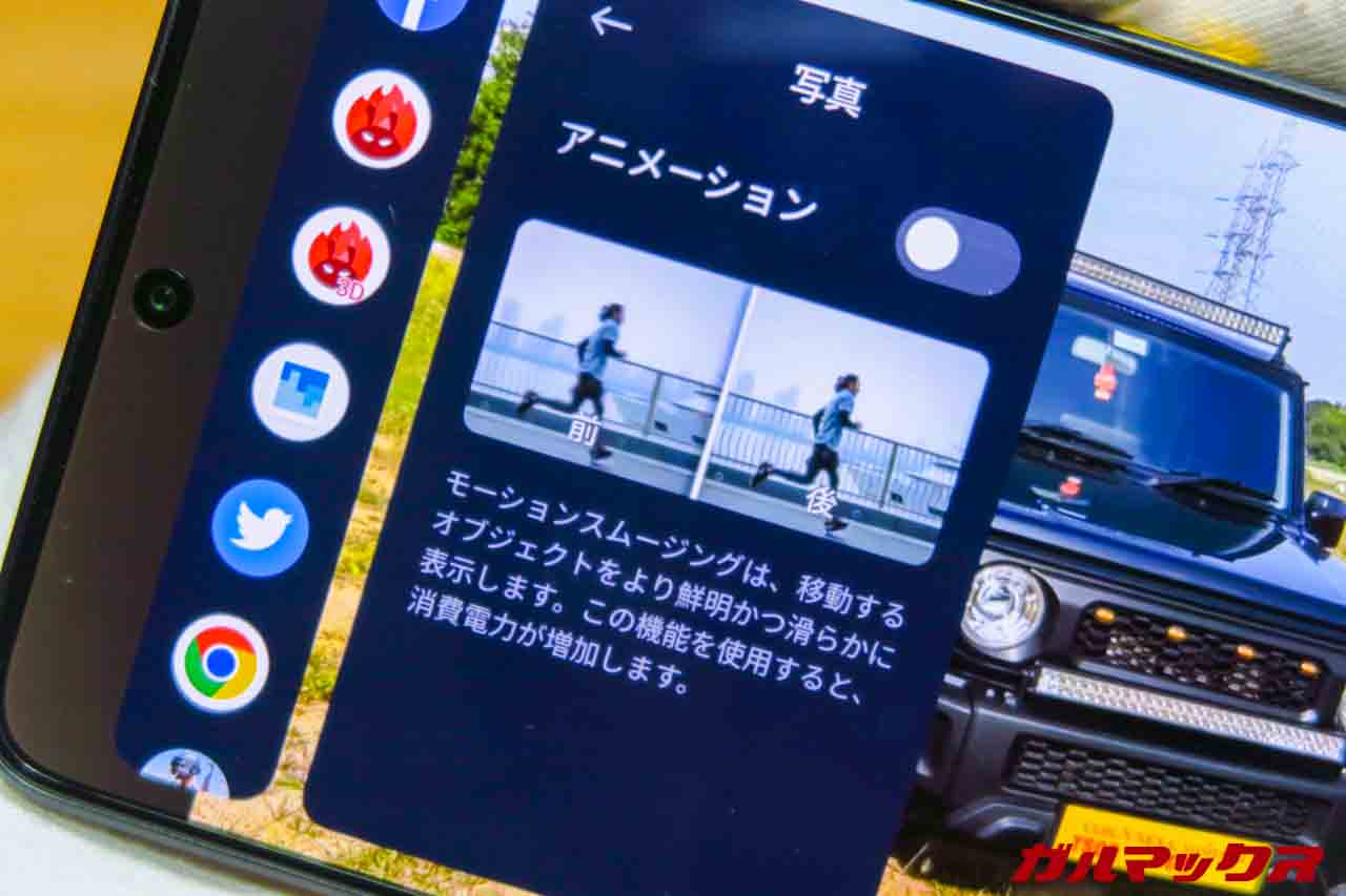 コレは何かというとSoCの性能を活かし、動画の1つ1つのフレームの間にAIが生成した補完画像を間に挟むことで動画の滑らかさを上げられるっちゅう機能なんすよ。