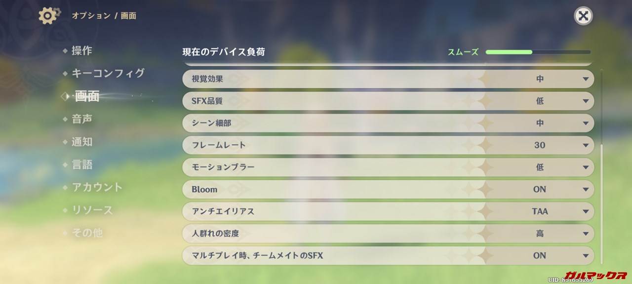 しかーし、POCO X6 Proの場合は平均75FPS前後でプレイ可能でなめらか!フレーム変動こそあれど、高負荷時に60FPSを割ることが無いのでプレイとしては非常に快適にプレイができますぞ。