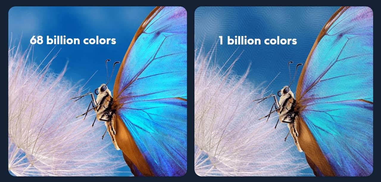 ▼そしてカラー表示も680億色と超広色域!すなわち、メチャクチャ細かく忠実な色表示も可能となっており写真や動画の閲覧で恩恵を感じられるってワケです。↓