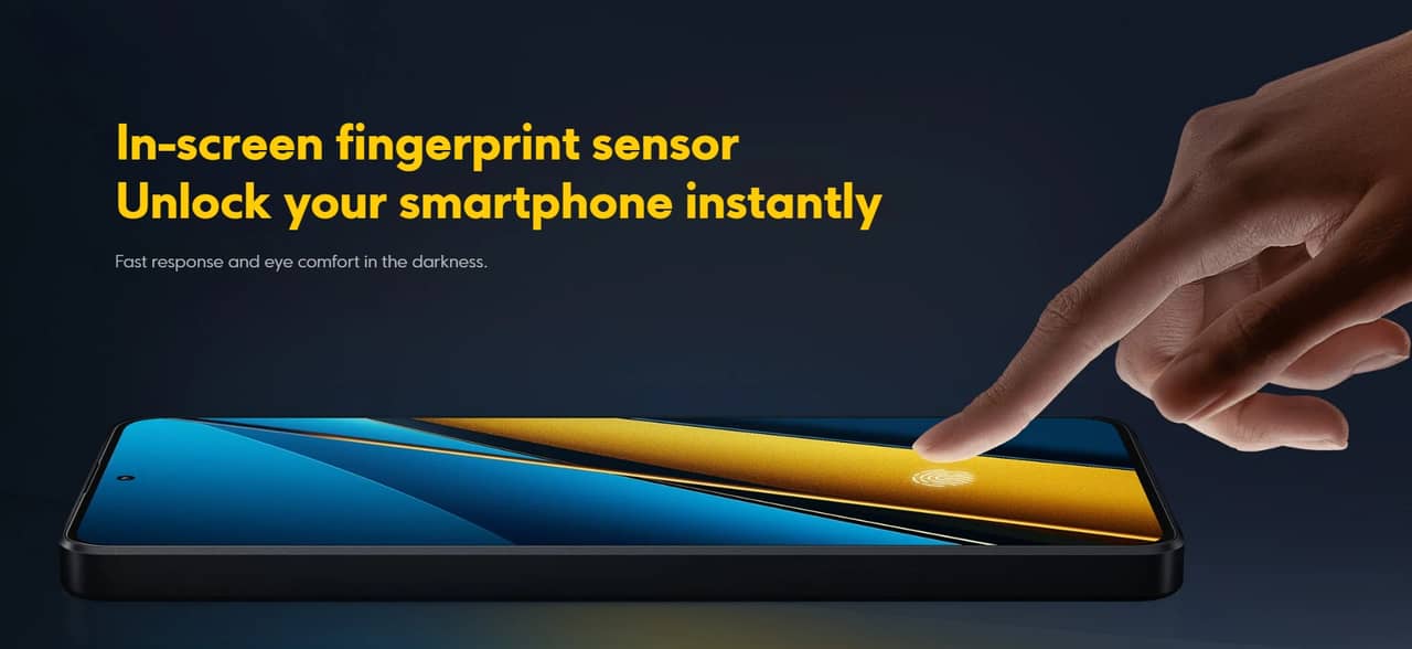 ▼そしてこちらのモデルもPro版と同じく画面内指紋センサーを内蔵していますよ!パッと見では位置が若干高くねって感じますが、側面式よりも左右の手で使いやすかったり机に置いたままでも認証できるっちゅうのはありがてぇもんです。↓
