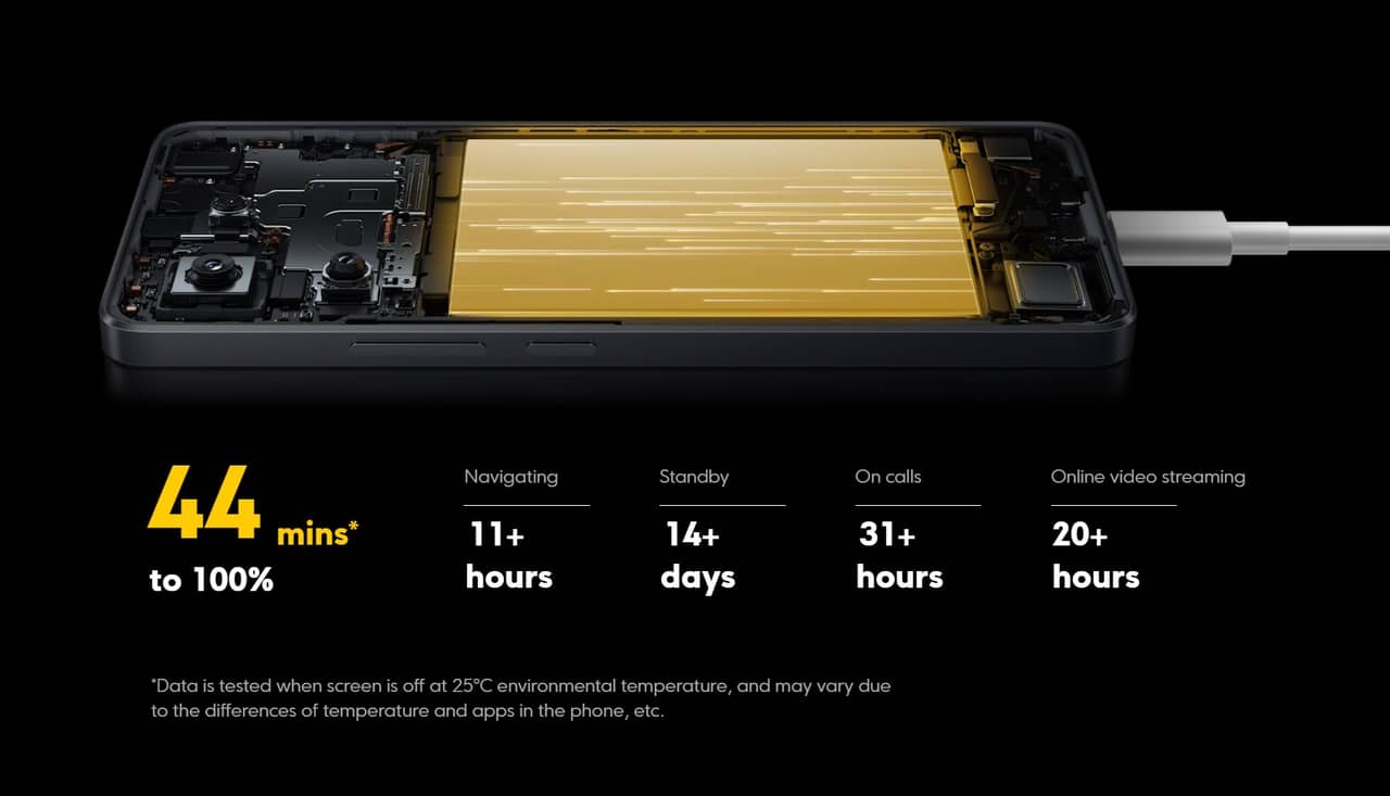 急速充電は最大67Wと上位版同様の仕様!満充電はたった44分で完了というペースの速さも魅力ですね。短時間でもバッチリ充電できるし、上述の電池持ちを考えるとかなり効率良さそう。