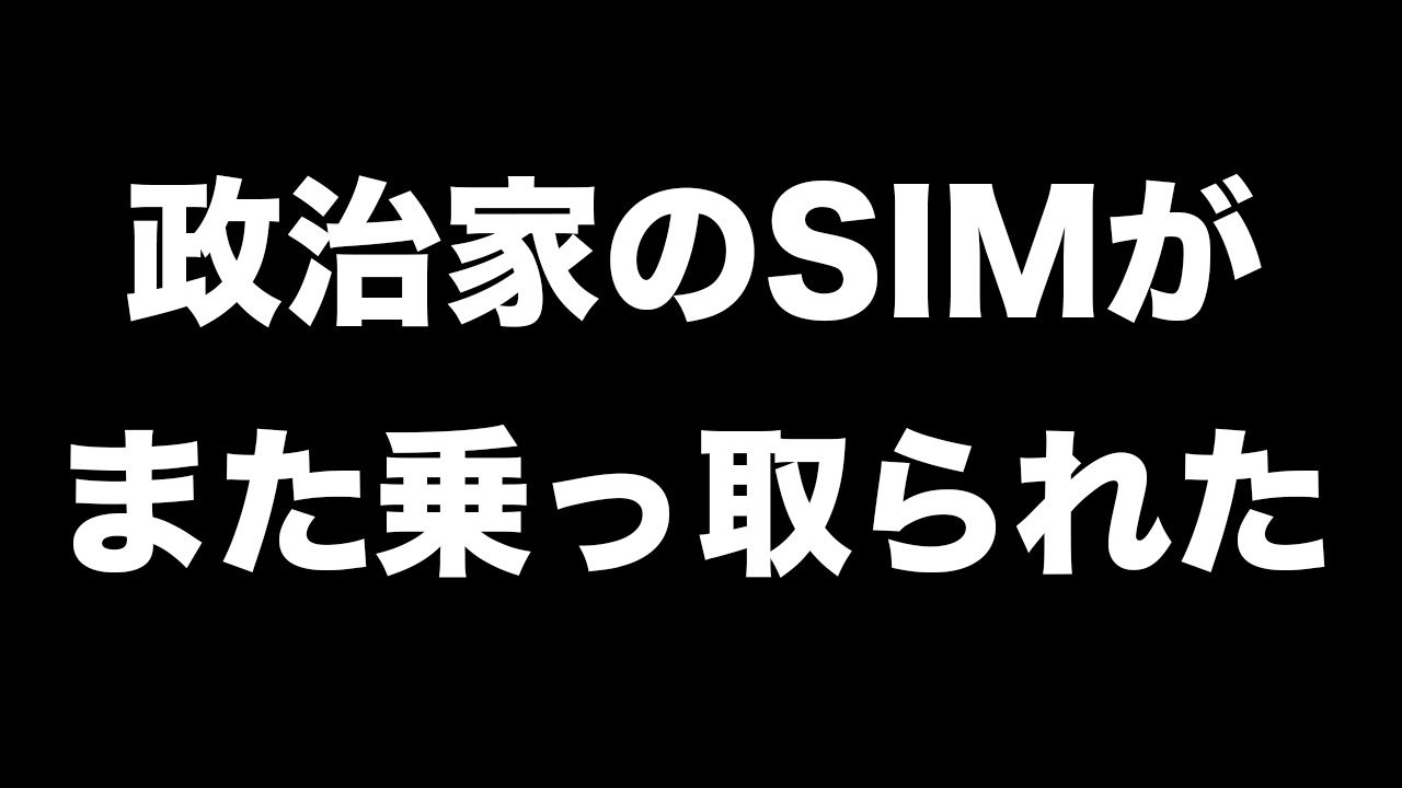 少し前にソフトバンク回線を使っている政治家のSIMが乗っ取られる事件が発生して話題になってましたが、別の政治家がSIMを乗っ取られたようです。まじか。