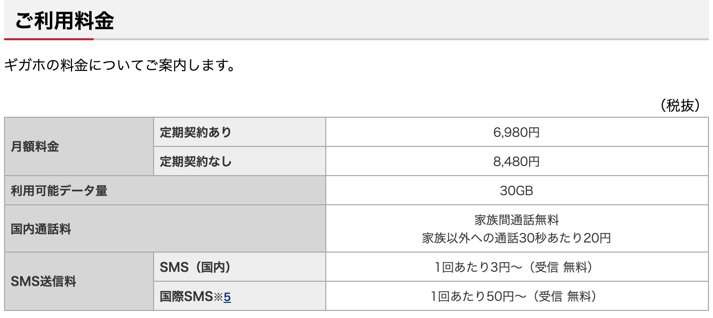 ▼例えばドコモのギガホを見てみましょう。以下がギガホのプラン内容です。↓