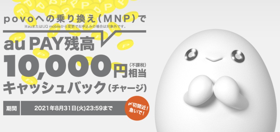 [更新]povoへ乗り換えるならお得に!au Pay残高1万円相当キャッシュバック開始!
