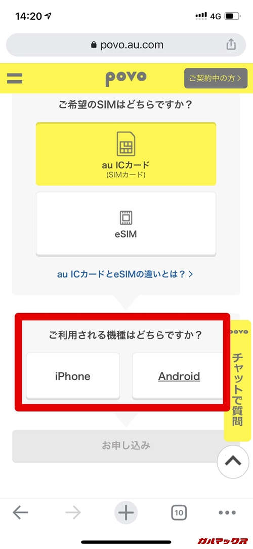 povoを申し込むときにeSIMも考えていたんですが、サービス開始から色々と問題が発生していたことに加え、ガルマックスではレビューでの通信検証にてSIMを入れ替えることが多いので扱いやすいSIMカードをチョイス。