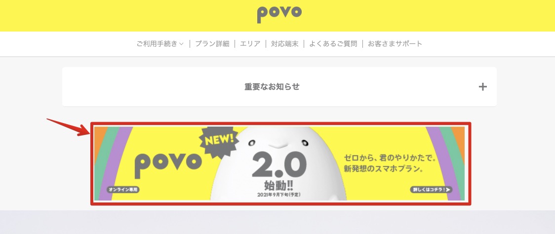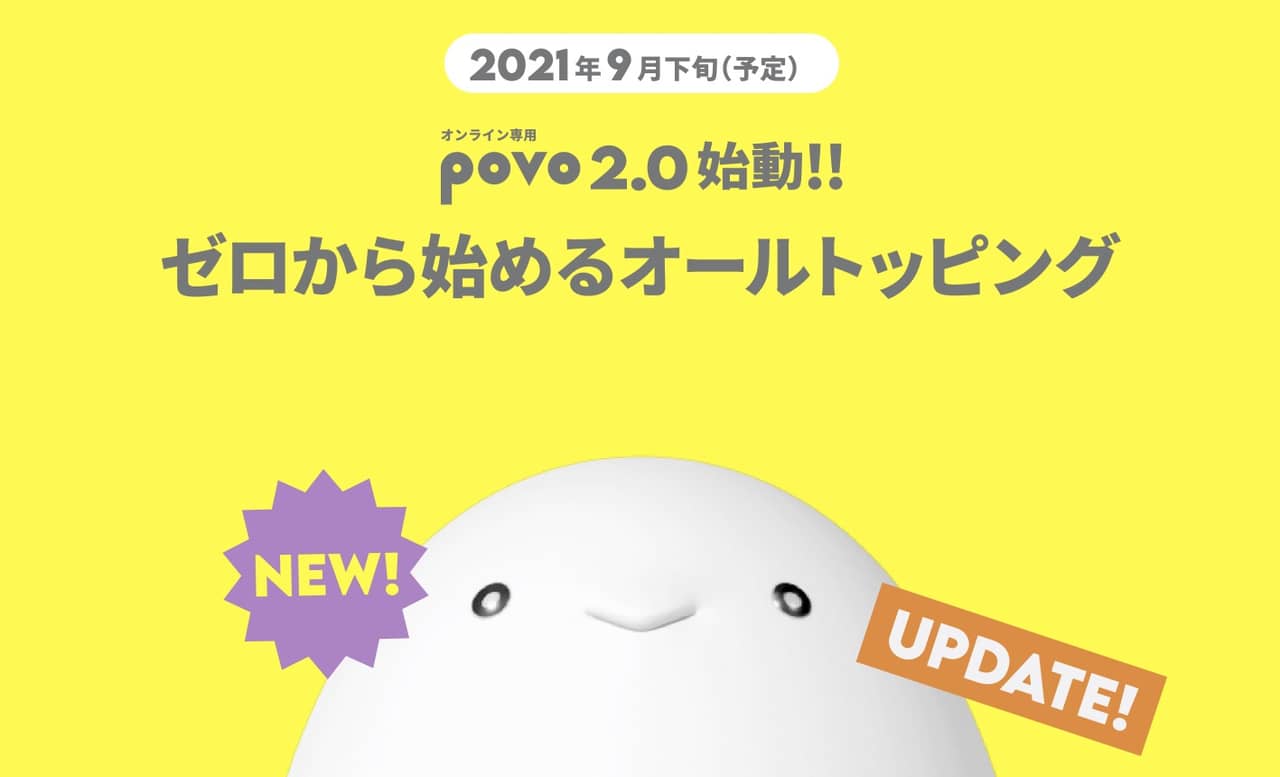 これに合わせて現行のpovoがpovo1.0に名称変更となり新規受付を停止するので、2021年9月29日以降の申し込みはpovo2.0となります。