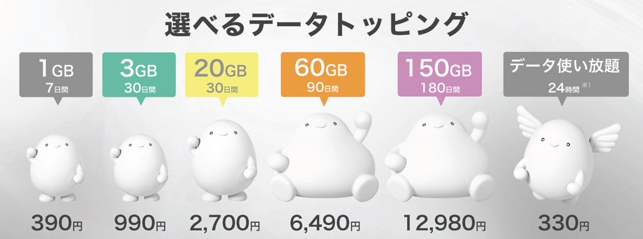 最大150GBまで選べるデータトッピングは「利用日数制」
