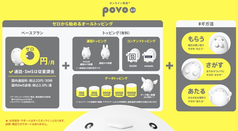 povo、基本料0円から始まるオールトッピング「povo2.0」を提供開始