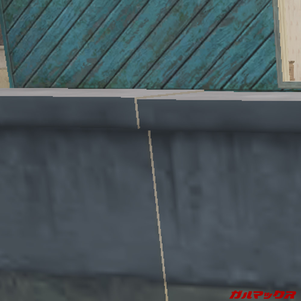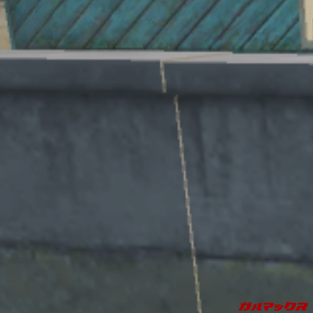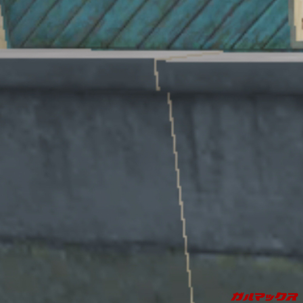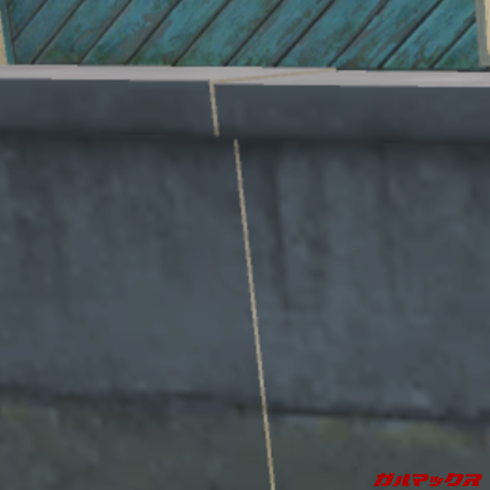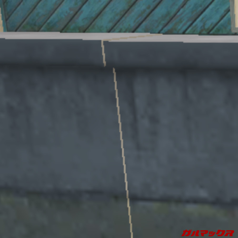 この状態でアンチエイリアスのオン/オフを比較。場所はPlaygroundの家屋そばの壁前です。