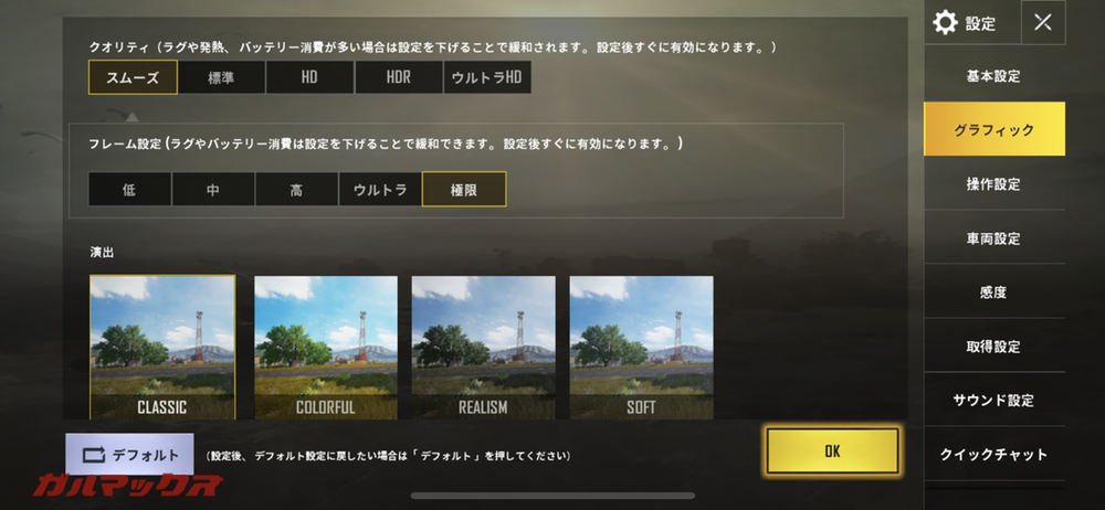 PUBG Mobileは「スムーズ・極限」設定が至高