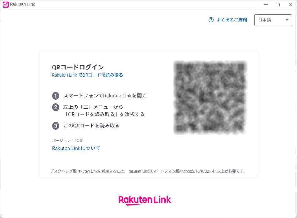 ▼初回起動時はログインが必要。スマホアプリ版のLinkを開いてPC上のQRコードを読み取ると自動でログインされます。↓