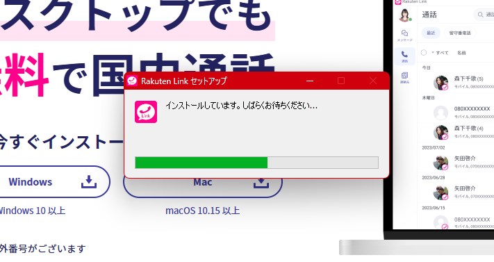 ▼ダウンロードしたRakuten Linkソフトを開くとインストール画面が出てくるんでそのままインストール。環境によってはファイアウォールの許可画面が出てくるので許可もしておきましょう。↓