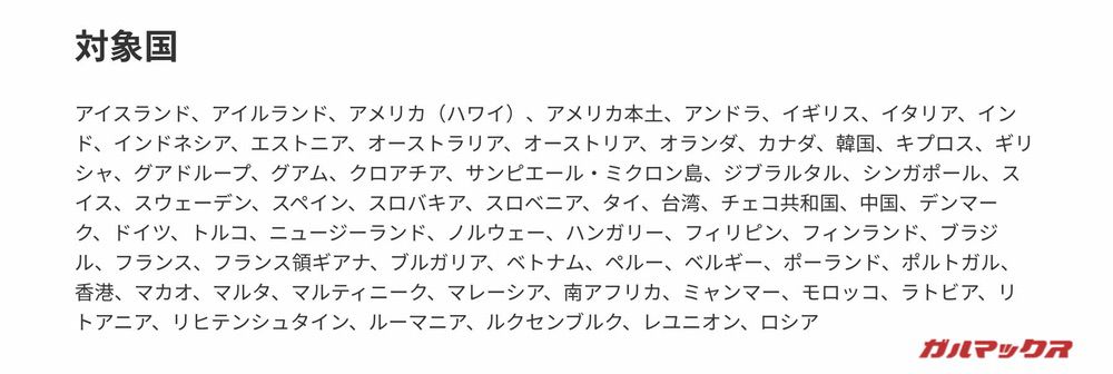 ▼海外ローミングが使えるのは64の国と地域で、アメリカや中国など主要な国は使用できますが、3大キャリアでは150カ国以上で使えるので対応地域がちょっと少ないですね↓