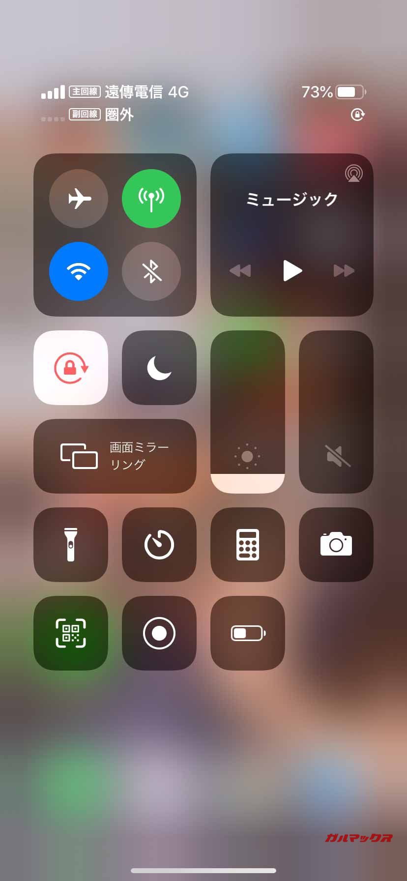 ▼iPhone XRのスクショ。遠傳電信の文字が出ています。副回線の方はIIJ mioのeSIMサービスなので海外ローミングの提供はなく圏外です。