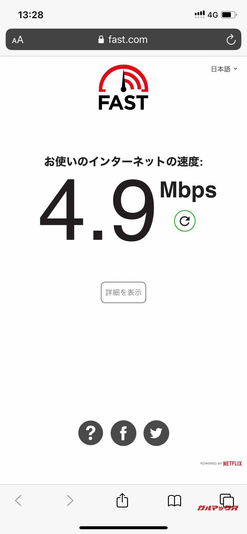 旅行中何回かスピードテストを実施しましたが速度は5〜10Mbpsくらいでした。