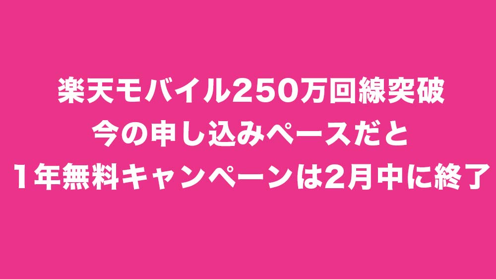 楽天モバイル新プラン好調で申込み数倍に。このペースだと2月中に無料キャンペーン終了