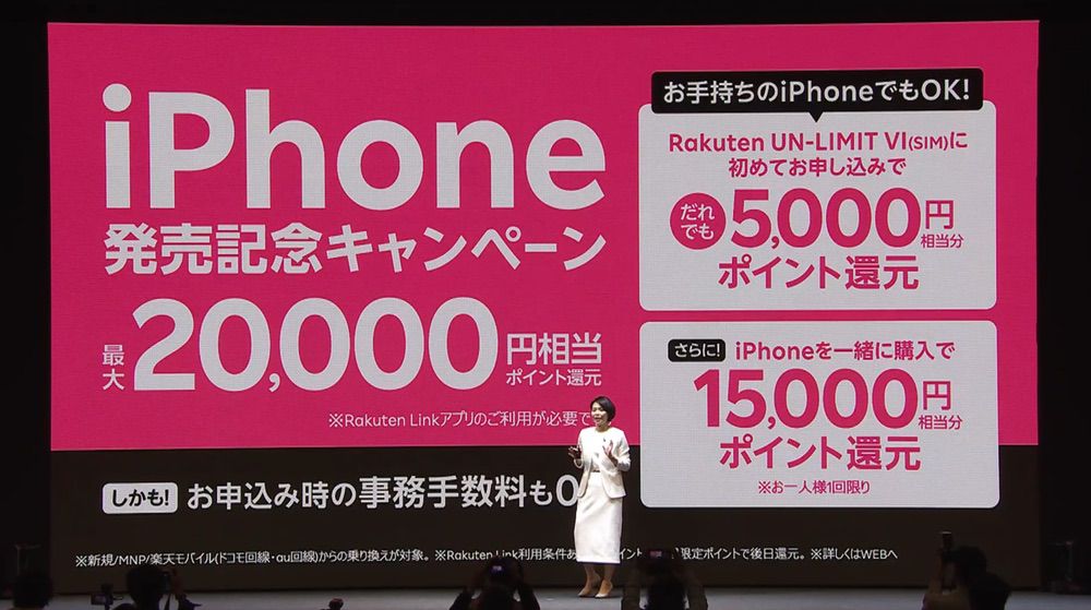 楽天モバイルといえば太っ腹なキャンペーンを数多く打ち出していますが、今回もやってくれました。iPhone発売記念キャンペーンで最大20,000円相当のポイント還元です。
