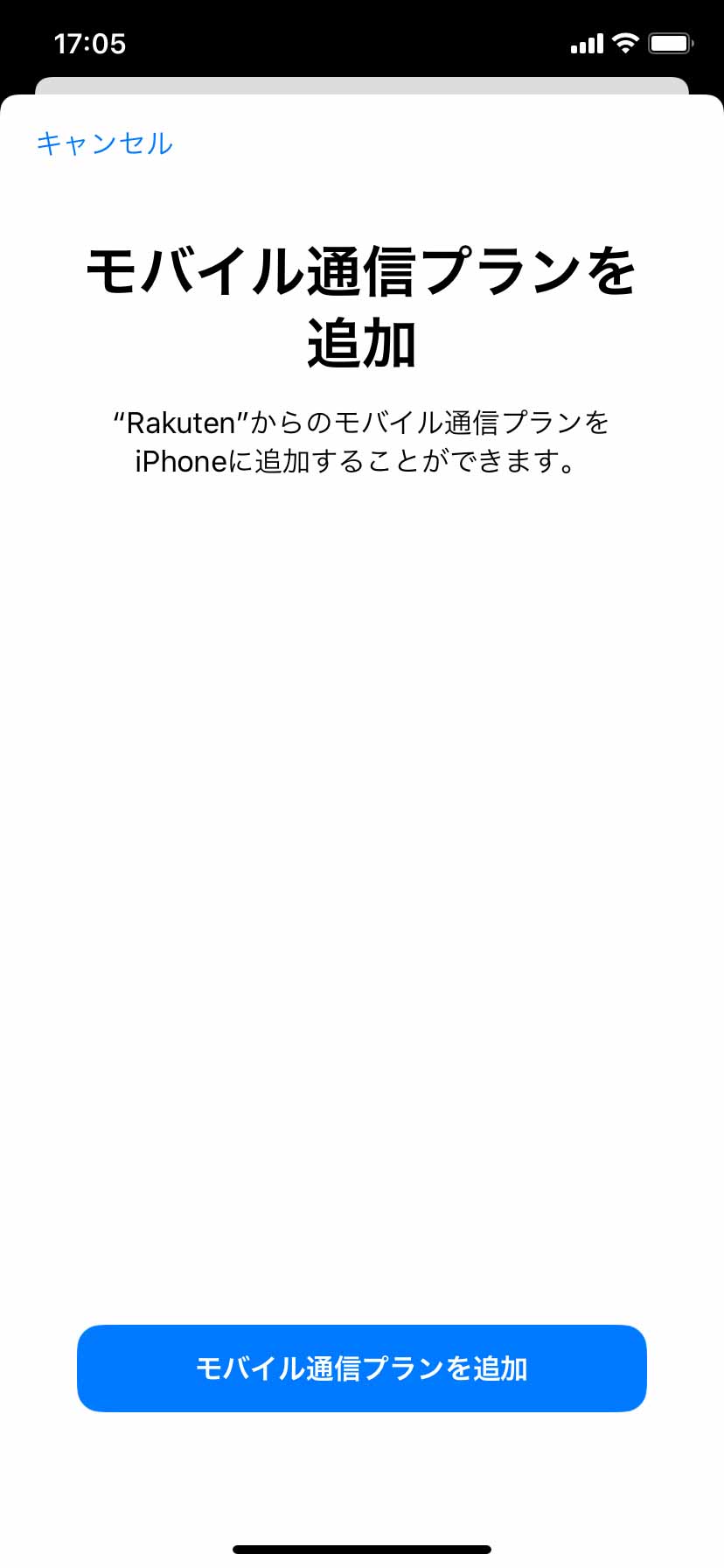▼カメラが起動するので先程のQRを読み込みます。すると楽天モバイルのプランを追加することができます↓