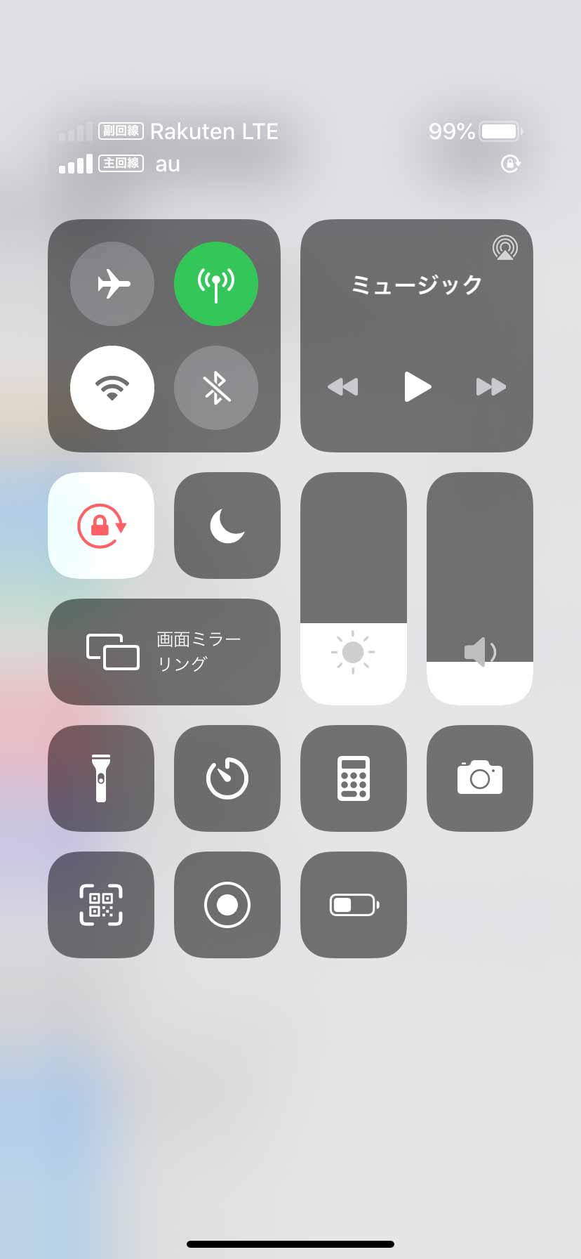 ▼僕はもともと契約しているKDDIのSIMを主回線としました。Rakuten LTEという表記であったりアンテナピクトが透明だったり不思議な挙動ですがデータ通信は可能です↓