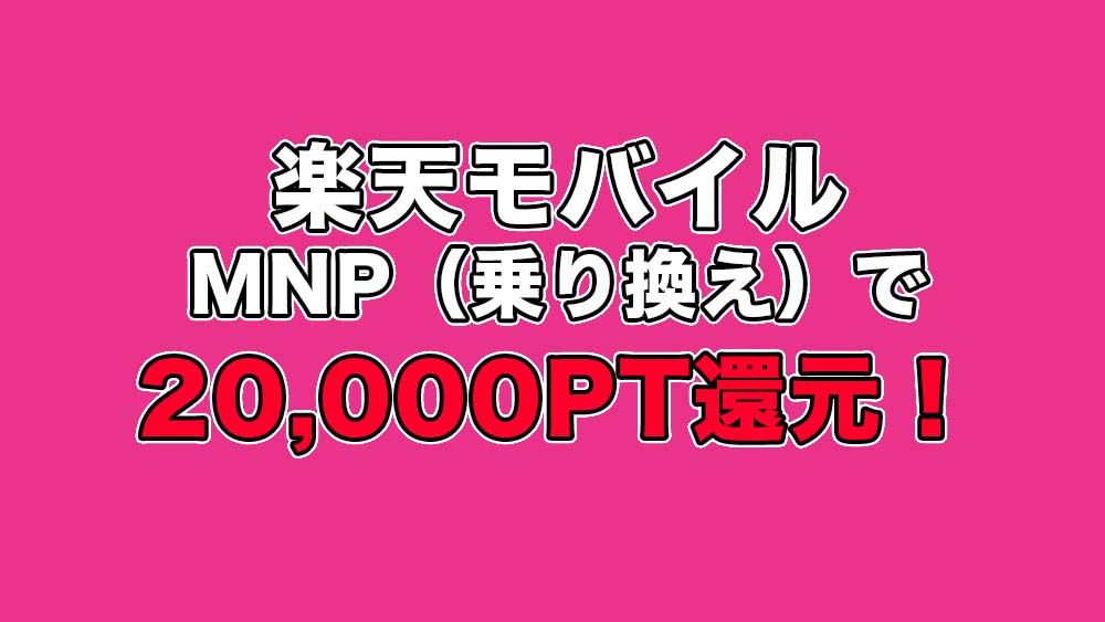 楽天モバイルがMNP乗り換えで申し込むと20,000ポイントが貰えるキャンペーンを開催!今までスマホなどの端末セットでは大量ポイント還元がありましたが、回線単体の申し込みで20,000ポイントは大きいですね。