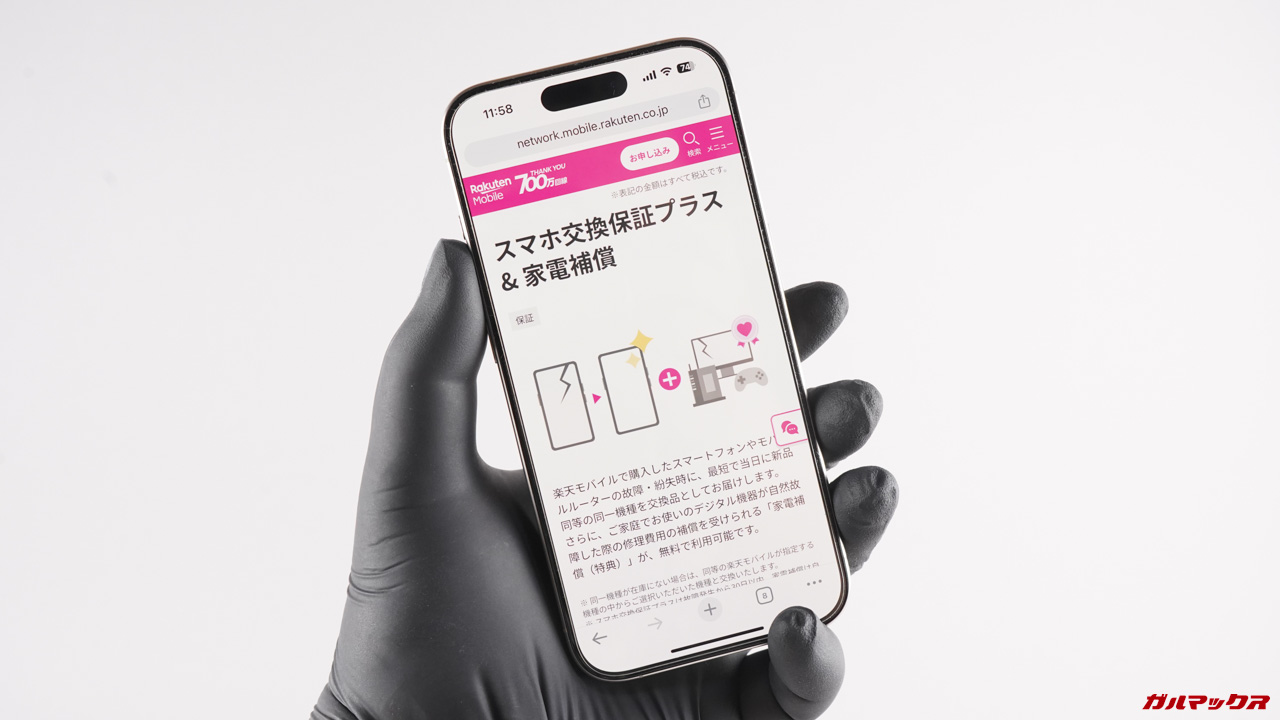 顧客情報はすでに楽天モバイル側が把握しているので、手続きや代替端末の手配は民間の保険サービスよりもスピーディと予想されます。