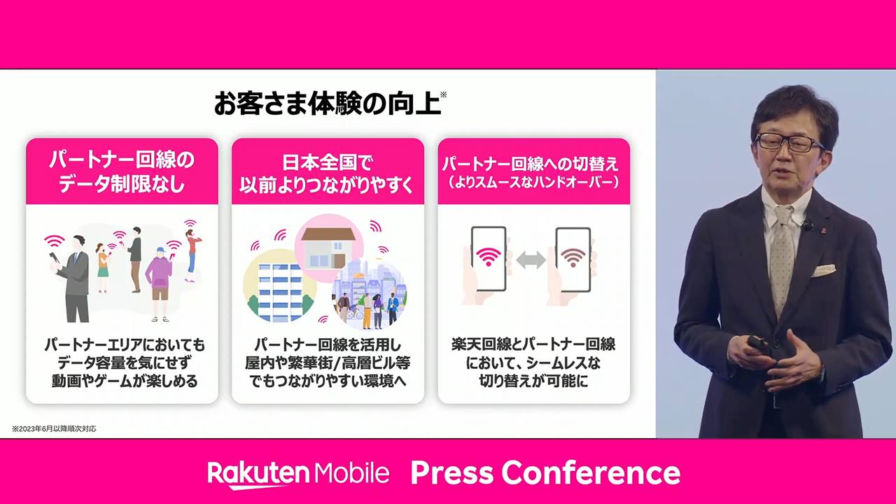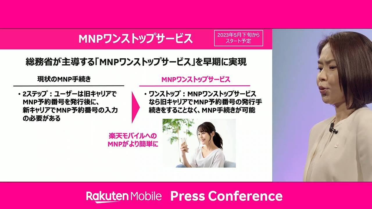 MNPワンストップサービスの実現も発表していました。これまでは乗り換え元のキャリアでMNP予約番号ってのが必要だったのが不要に。楽天への乗り換えがより簡単になるっちゅう仕組みです。これは5月下旬スタートだそうです。↓