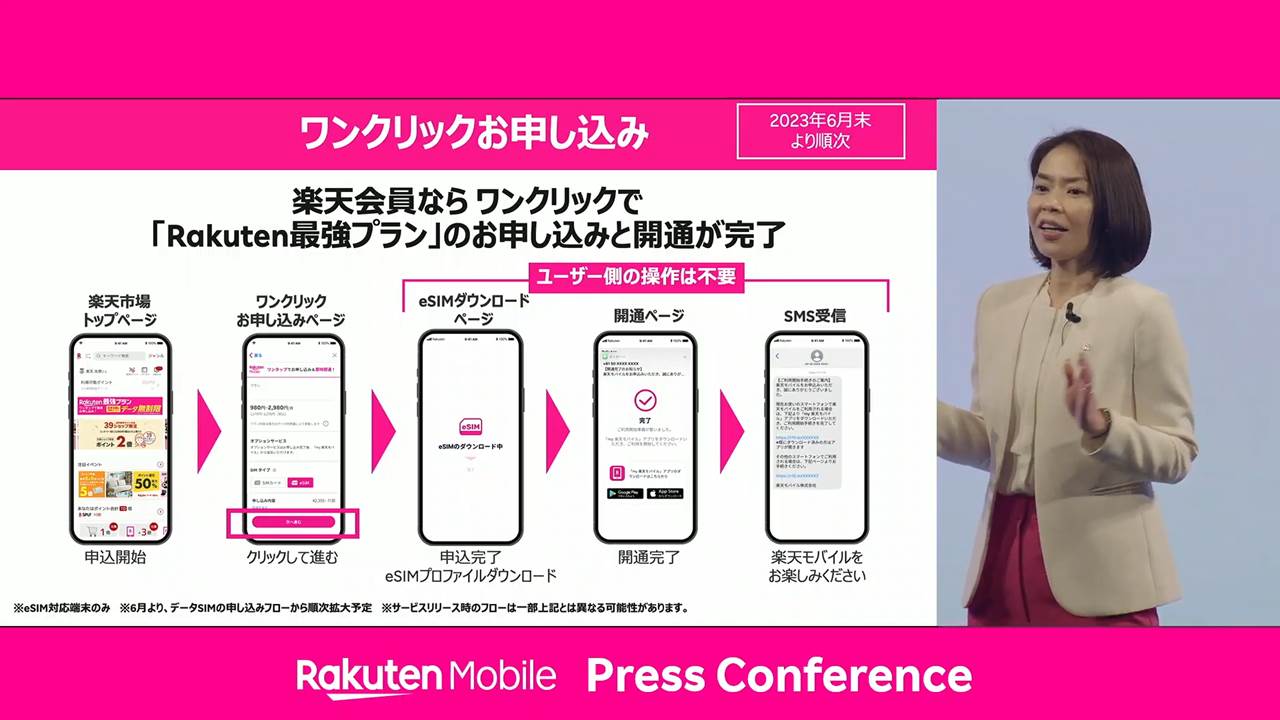 ▼またeSIM限定なんですが、「楽天市場のトップページ→申し込みページでプラン、オプションを選択→eSIMダウンロード→開通」と、非常に楽に回線が開通できるようになります。6月末より提供予定。↓