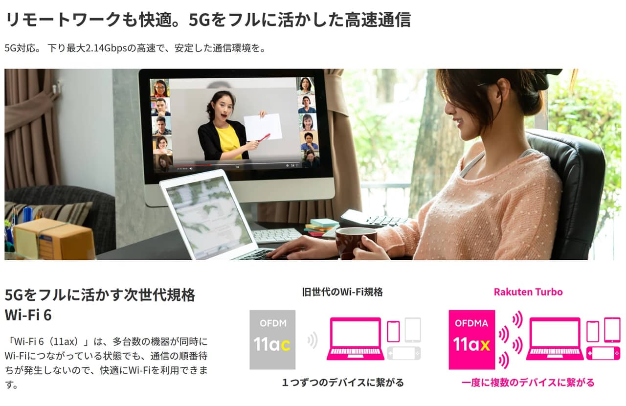 5G対応ルータ「Rakuten Turbo 5G」が販売開始!月額料金は3年間3,685円、端末代は41,580円