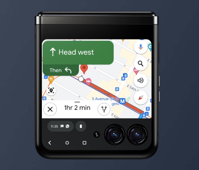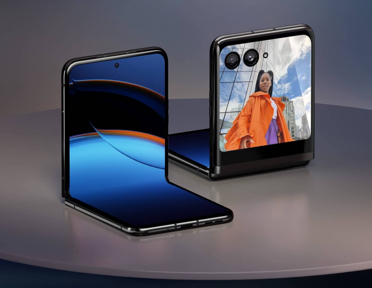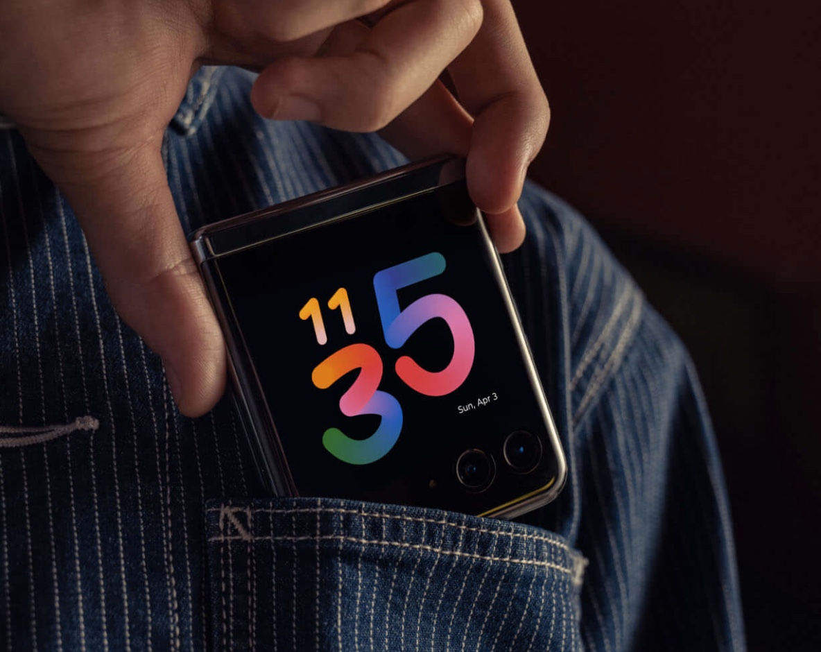 ▼razr 40 ultraは「縦」に折り畳むタイプのスマートフォン。Galaxy Z Flip5のように背面に大型ディスプレイを搭載している点がウリ。綺麗な背面カメラでの自撮りも簡単に出来るようになってます。↓