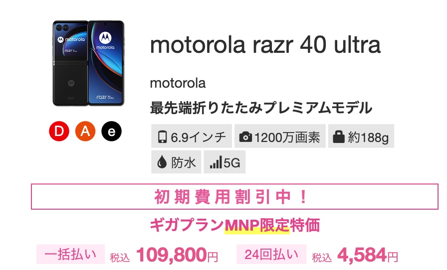 razr 40 ultraが109,800円。単体購入でも119,980円