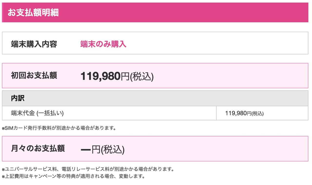 ▼単体購入の場合は分割はできず一括となりますが、119,980円と公式サイトより随分安く手に入ります。公式サイトで購入する人は居るのかな?というレベルでやすいですね。↓