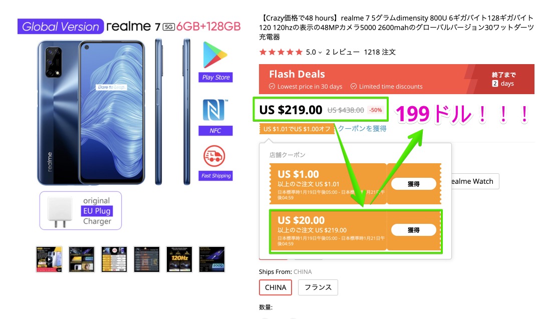 Realme 7 5Gのグロ版が$199。これは見逃しちゃダメ ※追記あり、現在219ドル