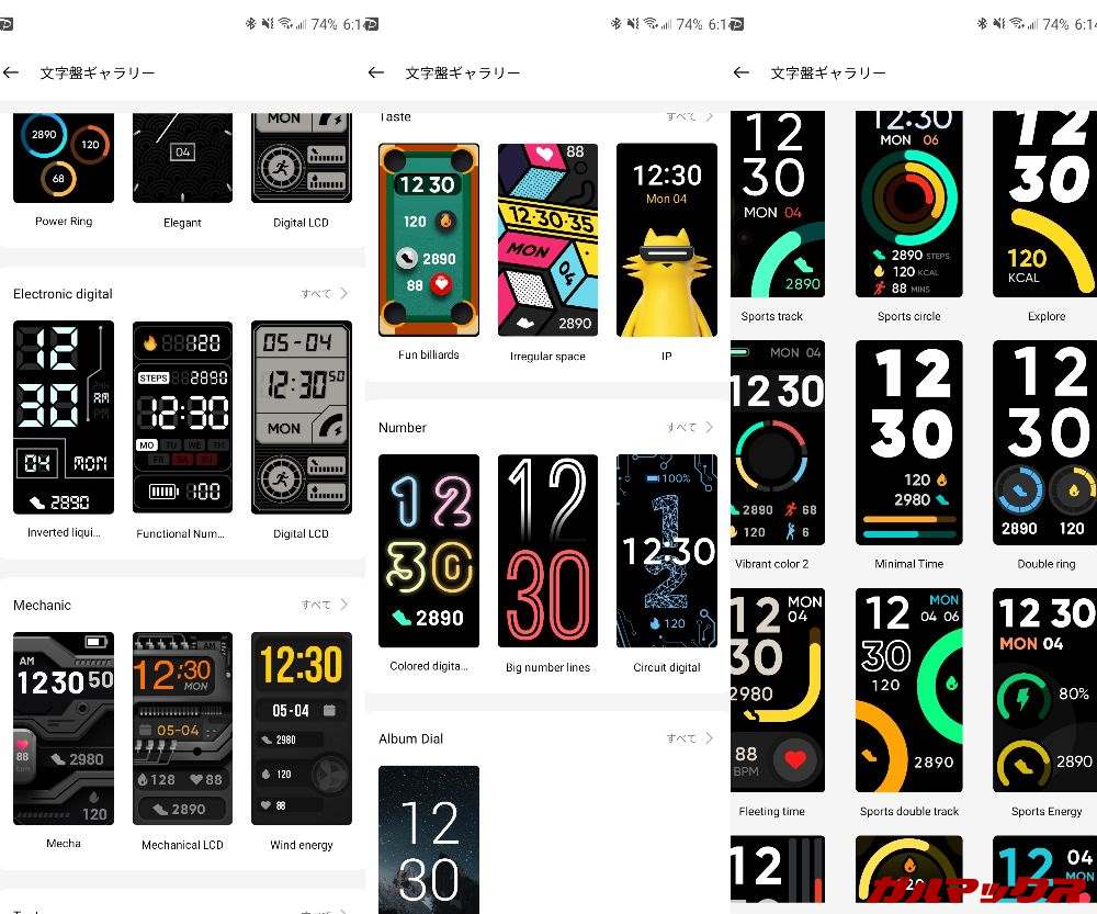 ▼超実用的な文字盤もあり、筆者は日付、バッテリー残量と秒針が出てくるタイプを愛用しています。グレーなので液晶っぽさも気にならず実にお気に入り!めっちゃカッコいい(っ´∀`)っ。↓