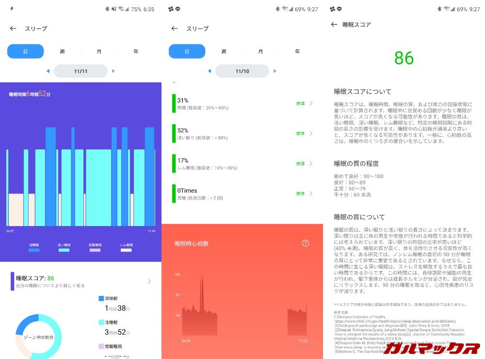 ▼血中酸素とは打って変わって間違いなく信頼できるのは睡眠測定!睡眠の深さは自分ではわからんのですが、眠りについた時刻と起床したときの時刻がかなり正確でした!それ故にスコアの良さもアドバイスも信頼できます。↓