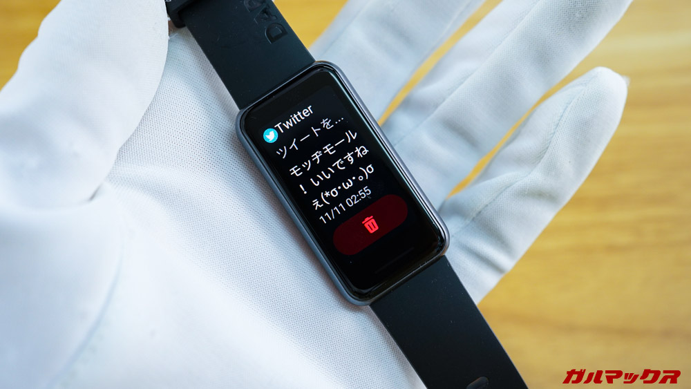 ▼スマートウォッチに欲しい機能ナンバー1であるスマホに来た通知を表示してくれる機能も当然のごとく対応!フォントがキレイなので見やすいし、一部はアプリアイコンもちゃんと出てきます。でも通知の全消去に若干時間かかるのは謎。↓