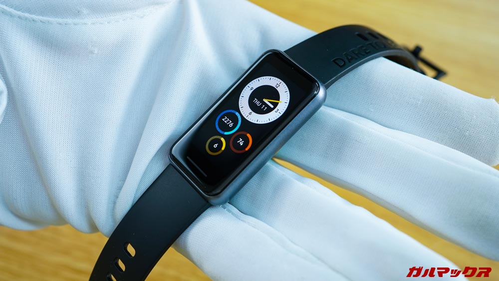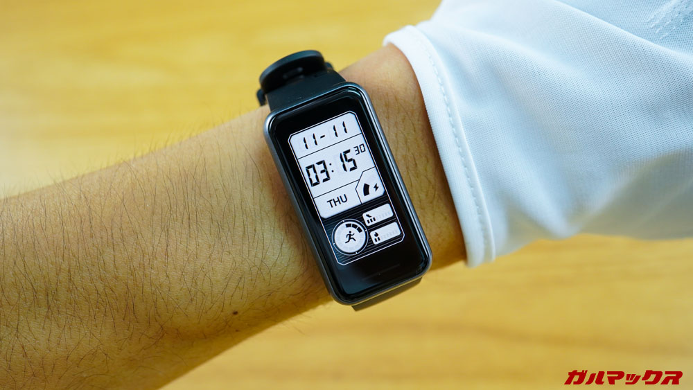 公式では電池もちは12日と言われていますが、筆者が使った場合は7日ほどでした。常時心拍数測定、腕を上げて画面ON、輝度80%、睡眠センサーONと電池を食いまくる設定で使ってたので公式より短くなるのは当然か。ちなみに運動測定はほぼしていません。